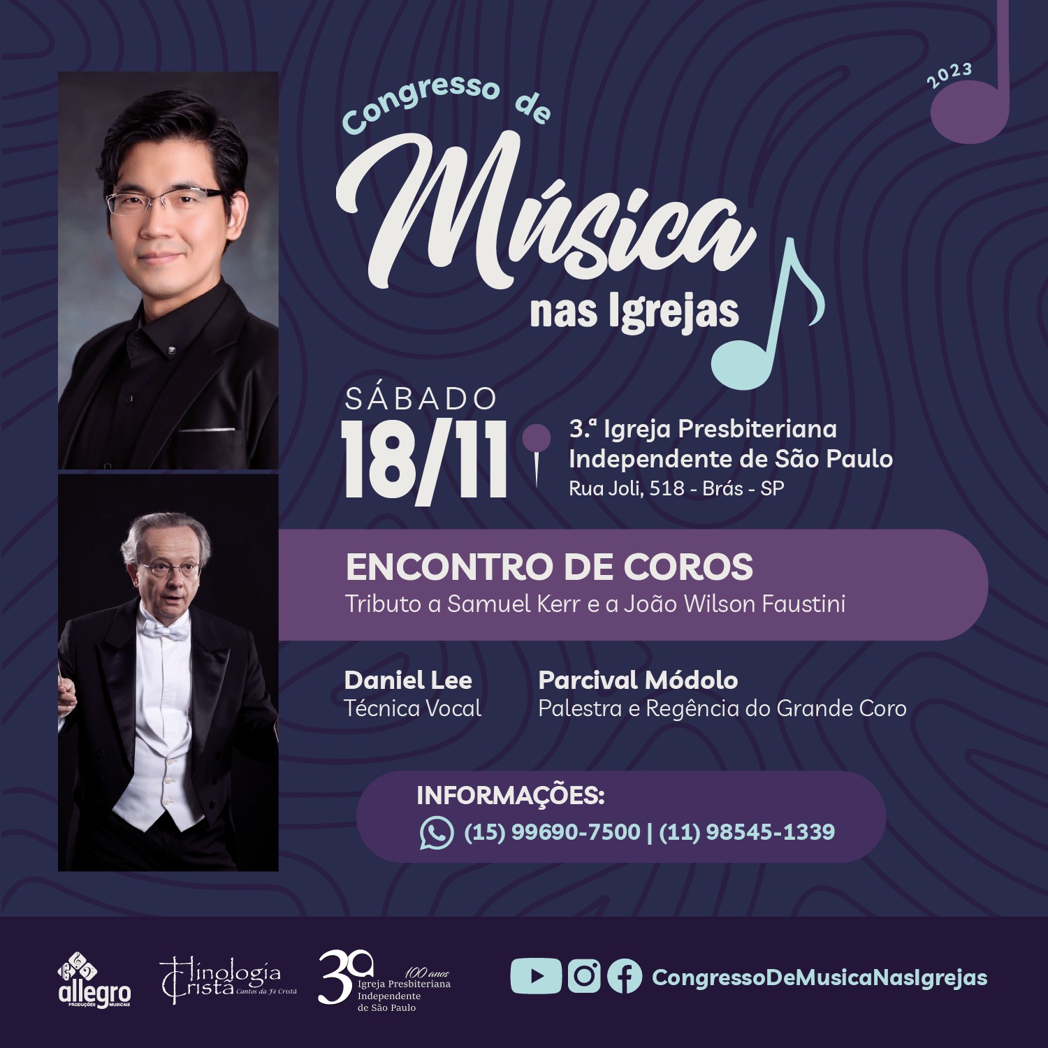 Vem aí o Encontro de Coros | Tributo a Samuel Kerr e João Wilson Faustini promovido pelo Congresso de Música nas Igrejas! Será um tempo muito especial que reunirá atividades formativas e um belíssimo encontro com a participação de vários grupos corais.