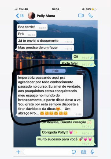 Bom, além do meu depoimento nesse testemunho, Confira agora depoimentos de algumas das centenas de alunas do curso de bronzeamento natural