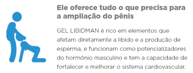 LibidMan Gel é um gel de massagem usado como uma forma de aumentar o desempenho sexual do indivíduo, um tipo de estimulante sexual que atua diretamente sobre o órgão sexual masculino e aumenta a vascularização da área penetrando com seus agentes de composição no corpo cavernoso do pênis.