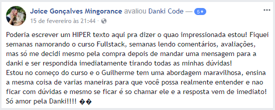 Veja abaixo depoimento se o Pacote Full Stack da Danki code vale a pena?